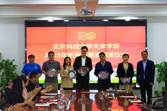 在社科图书馆为全体获奖教师颁发奖盘。获奖教师们难掩喜悦,纷纷手捧荣光,参观20周年校史展览并与之合影留念。