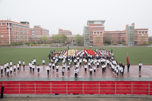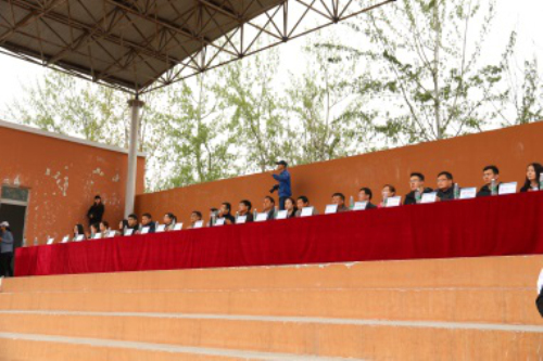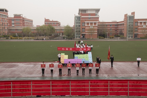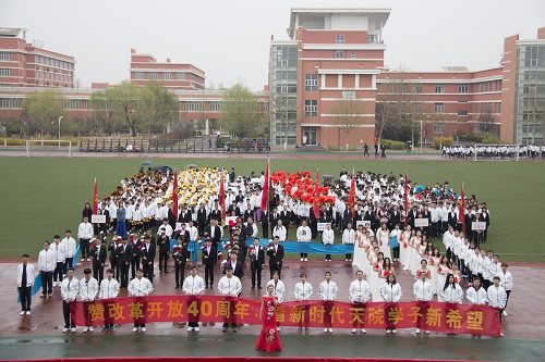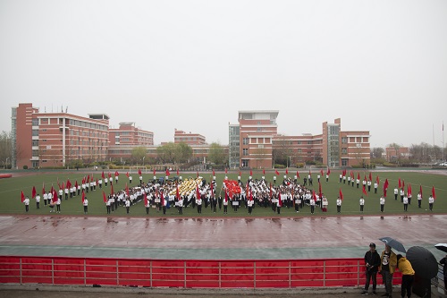 代表队,他们的步伐铿锵有力,表演整齐划一,用手中的扇子舞动靓丽的青春;材料科学与工程系代表队运用元素的谐音,摆出“一心有党、一同加油”标语,让人眼前一亮;机械工程系代表“明德励学,效实致新,天院机械,拼搏奋进”的口号响彻操场;信息工程系代表队的武术表演气势磅礴,展现着青年大学生的自信与热情;经济系代表队的海草舞使全场气氛更加活跃,党徽和NO.1的队形寓意着坚定理想信念,不断拼搏进取;管理系代表队用舞步谱写着“扬新时代风帆,成有作为青年”青春旋律;法律系代表队 “LAW”的队形与“弘扬宪法精神,维护宪法权威”的标语让人记忆深刻;外语系代表队立足专业特色,团结奋进、积极进取,投身“一带一路”建设;艺术系代表队用歌声唱出“赞改革开放40周年,看新时代天院学子新希望”的美好憧憬;最后出场的是校健美操、啦啦操代表队激情的舞蹈感染了全场。各方阵表演结束后,全体师生面向国旗,升国旗,奏唱国歌。紧接着是运动员代表和裁判员代表先后宣誓,党委书记、院长王斌致开幕词。开幕式到此结束,运动会正式开始。