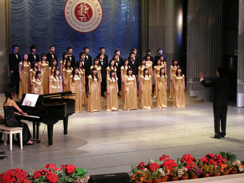 管乐团,他们以一曲革命浪漫主义情怀的小合奏《红梅赞》和一首气势磅礴的大合奏《红旗颂》博得了评委们的一致好评;合唱团的重唱《少年》,小合唱《I will follow him》、《掀起你的盖头来》、校歌《钢铁摇篮之歌》以独特的表演形式展示出p站