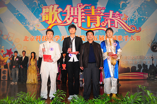 院长郭景文为校园歌手大赛的冠、亚、季军颁奖