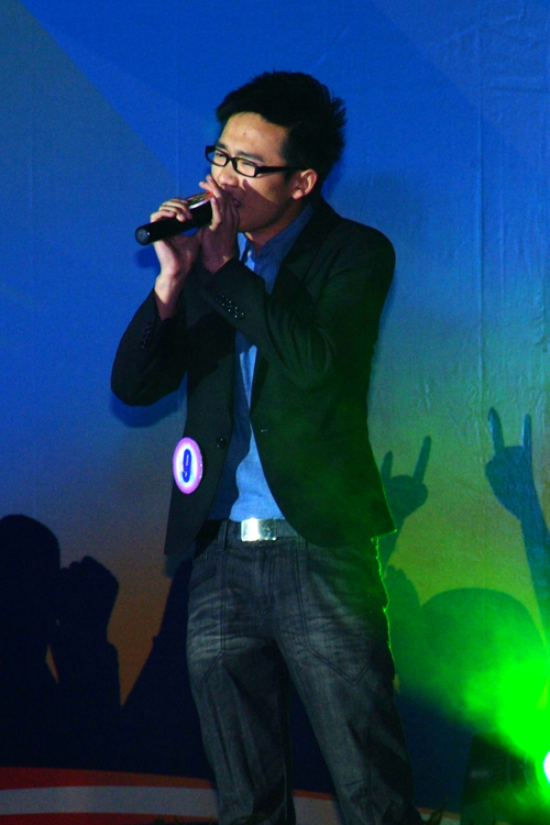 比赛也随即步入高潮,首先来自信息0901班的李英宪为大家动情演唱的韩文歌曲《命运》,引来在场观众的阵阵尖叫。接下来管实0902班的马志成自弹钢琴,带来的一首婉转悠扬的《青花瓷》,把现场观众带入了诗画的意境中。随后更是精彩不断,来自管实0902班的许彬带来了一首爵士风的《Can’t Take My Eyes Off You》,把现场气氛推向另一个高潮。在比赛末尾来自国贸0806班的张斯博用天籁般嗓音演绎的《传奇》轰动全场,并获得了98.06的高分。最后,来自信计0801班的刘桐动情演绎的一首《背叛》,为此次比赛画上了圆满的句号。
