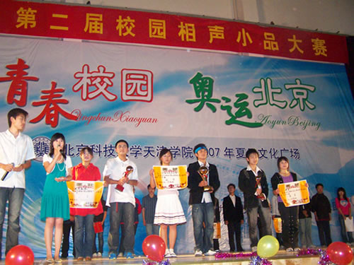 5月23日晚,第二届相声小品大赛在体育馆隆重举行,本次比赛由经管系分团委、话剧社、电影社联合主办。党委副书记、副院长王斌、团委副书记岳强、张恩惠、代鸿滨及各专业辅导员观看了比赛。 本届相声小品大赛参赛节目由各专业和社团选送,共有9个节目参赛,其中,相声3个,小品6个,演员们幽默诙谐的语言和夸张搞笑的动作将一幕幕精心编排的节目展现给观众,晚会现场欢笑声不绝于耳。相声《社团热》、《新西征梦》、小品《孙悟空与白骨精之半生缘》、《响当当杯辩论赛》等都给观众留下了深刻的印象。由国贸064班表演的小品《Q版伯哥与台妹》和由金融06级选送的原创作品《新闻联播》则采用时尚而夸张的语言使作品充满了幽默感和吸引力,他们的演出把现场气氛推向高潮。 根据评委打分,国贸专业的小品《Q版伯哥与台妹》获一等奖、金融专业的小品《新闻联播》获二等奖、戏剧社的小品《考验》获三等奖,各单项奖也都名花有主。党委副书记、副院长王斌、团委副书记岳强、张恩惠、代鸿滨等领导上台颁奖并向演员们表示祝贺。大赛在第二届校园歌手大赛冠军得主官晓尘的歌声中圆满结束。 本届相声小品大赛作为p站 第二届夏日文化广场的系列活动,展示了p站 学生的表演才能,成为夏日校园一道靓丽的风景线。 (新闻信息中心 记者:孟晓娟;摄影:鹿麟、苏轶;编辑:张书源)