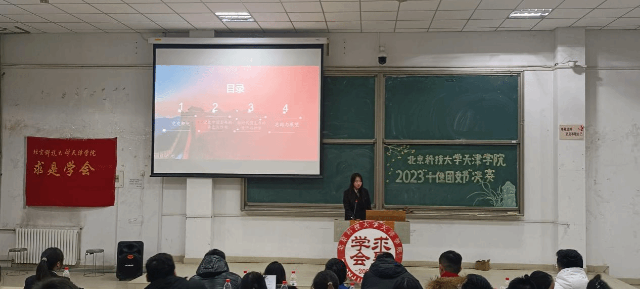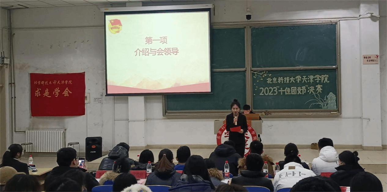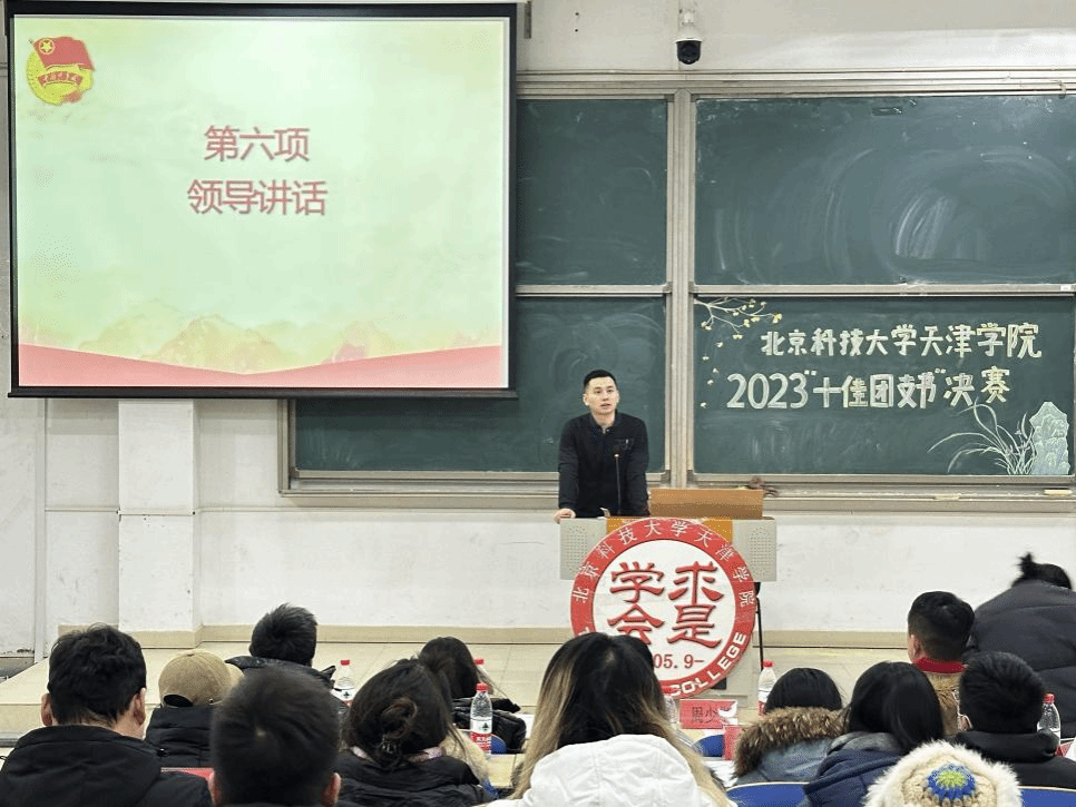 2023年“十佳团支书”评选决赛在9教109举行。团委班子成员,各部部长、二级院系分团委书记,以及由各院系分团委副书记组成的学生评审团、20名入围决赛选手参加。