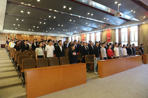 党委副书记叶振楠、学生处常务副处长田勇、团委书记殷实、团委副书记李洋、何欢欢,各院系分团委书记、团学组织指导老师、基层团组织负责人以及团员代表共200余人参加此次典礼。团委副书记张添善主持典礼。