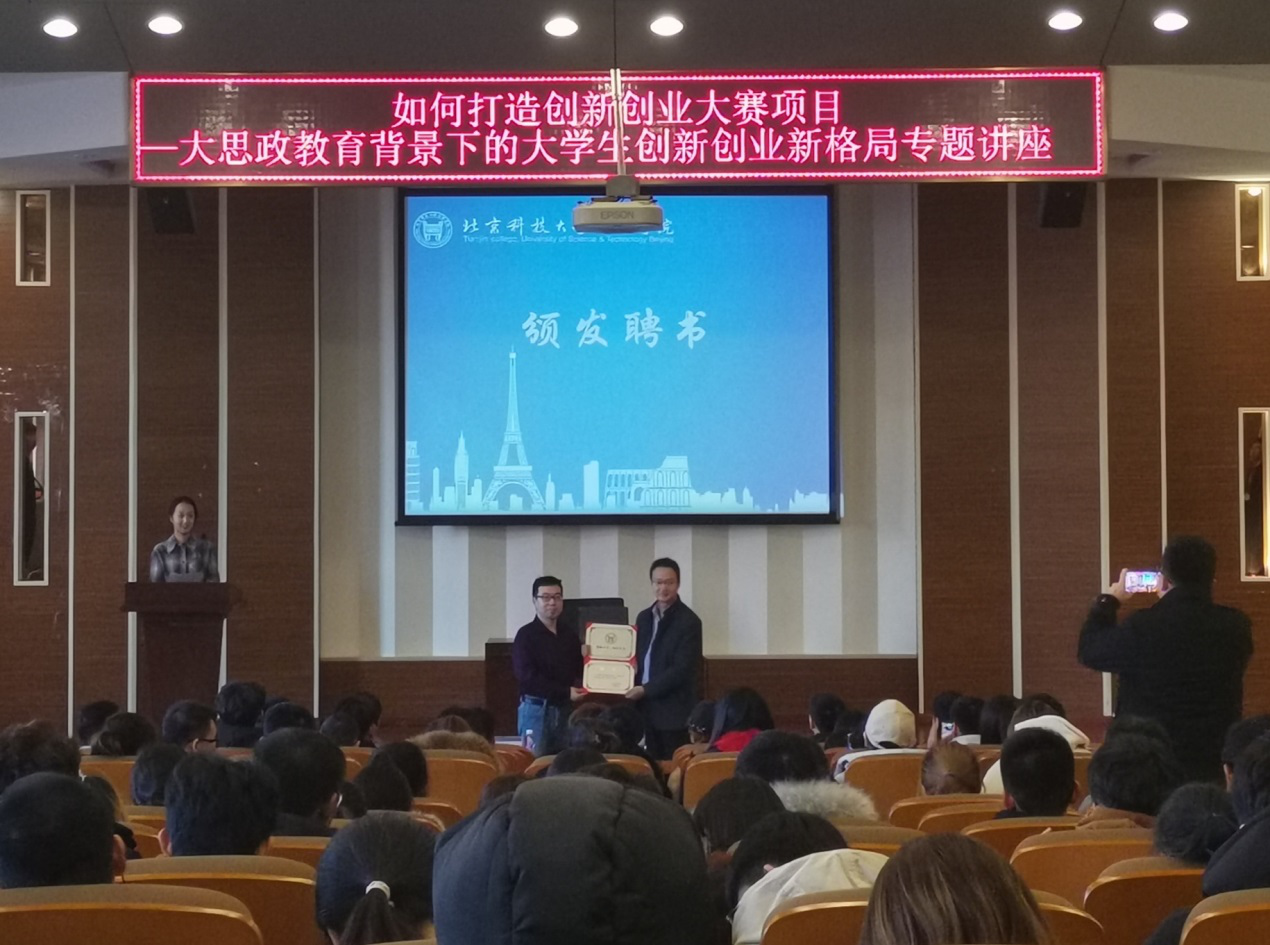 12月19日,创业指导中心在理工馆学术报告厅举办了关于“如何打造创新创业大赛项目——大思政教育背景下的大学生创新创业新格局”专题讲座,特邀请到在全国重点高校、北京市政府单位和国有金融投资企业担任管理职务,长期从事文化金融领域的孵化与创投工作,现任中视泽宜投资创始人的杨波博士进行此次讲座。此次讲座为进一步深化创新创业教育,提高学生创新创业精神,推动各高校创客青年与创业导师互动交流。出席本次讲座的嘉宾有中视泽宜投资创始人杨波博士、p站