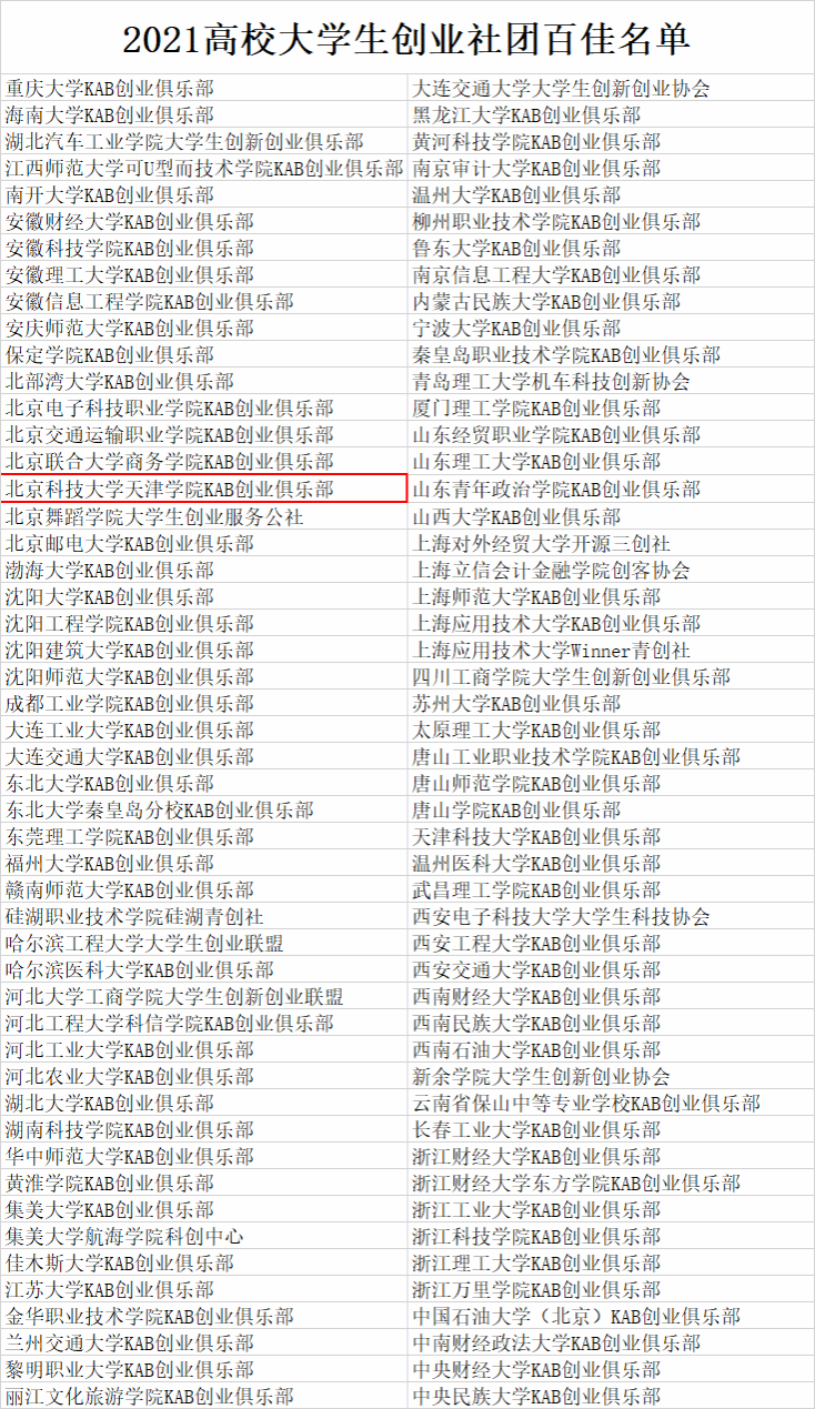 KAB大学生创业俱乐部成功入选2021年全国高校大学生创业社团百佳。