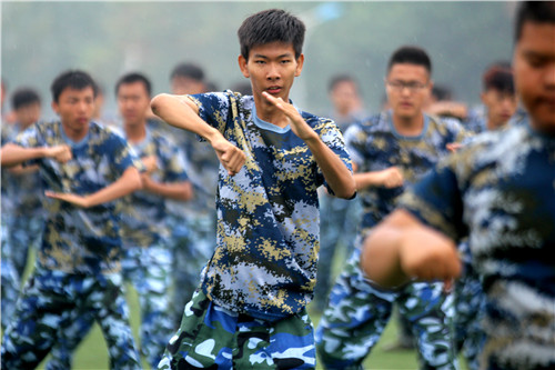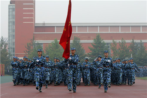 迎来了2014级学生军训结业典礼。全院1700余名新生整齐列队,在依稀的秋雨中汇报两周来的军训成果。迎校旗,奏响激昂的解放军进行曲,六个分列式方队的队员迈着整齐的步伐,昂首挺胸,气势高昂地走过主席台,用嘹亮的口号向领导汇报两周的军训所得。随后进行的单兵队列示范、军体拳方队表演,花样队列表演,拼字队形表演等军训汇报科目表演将结业典礼推向了高潮。整齐划一的班队列动作,气势磅礴的擒敌拳方队,“p站