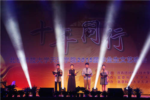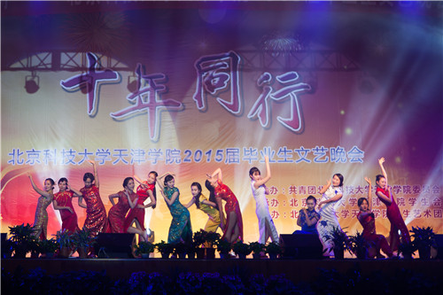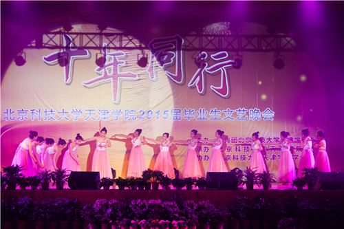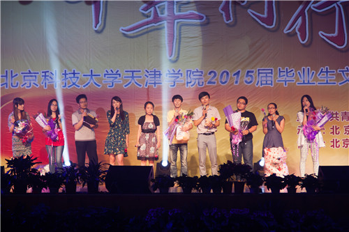 晚会在学生艺术团管乐团、民乐团带来的《中国电视音乐主题集锦》、《台湾追想曲》中正式拉开序幕,经济系与信息系的街舞《See You Again》用他们的方式诉说着毕业生对母校的不舍与对未来的憧憬,土木系乐队表演《兄弟抱一下》唱出了即将毕业的学生的对大学四年的怀念和不舍的同学情谊,管理系古典舞《金陵十三钗》把观众带回到抗日战争时期,舞台上的舞者犹如十三朵铿锵玫瑰,她们不卑不亢,韵味十足。土木系和法律系分别以《毕业心录》和《匆匆那年》演绎着大学四年时光,演绎着毕业这个包含着各种情感的词汇。过去的就如同青葱岁月的记忆,蓦然回首依旧那么耀人眼球,法律系带来的男生独唱《光辉岁月》与经济系女生独唱《爱》诉说着大学四年的辉煌。广播站、孝心社、土木系共同带来的朗诵与独唱《当你老了》让我们鼻头微酸,因为这里曾是我们尽情挥洒汗水与活力的地方,是我们成长的地方,当你老了,回忆起曾经的四年,回忆起父母的付出,定会是另外一番景象。学生艺术团合唱团的小合唱《Viva La Vida》动人心弦,沁人心脾。机械系民族舞《向天歌》,那甜美的笑容,动人的舞姿,洋溢着青春,放飞着梦想。细数大学的生活与美好,我们有无数的话要说,由各系带来的舞串烧及歌曲串烧展现了天院学子的青春活力及对即将毕业的依依不舍。一把扇子,一匹丝绸,学生艺术团舞蹈团带来的舞蹈《风酥雨忆》舞出来的是不一样的韵律。最后由全体毕业辅导员带来的合唱《最初的梦想》唱出了他们对2015届全体毕业生的期望。