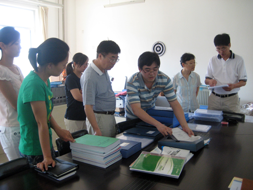 检查小组在基础部办公室进行问题讨论汇总,经过充分的讨论沟通,大家形成了以下几个方面的共识:首先,各个系部尤其是系秘书做了大量工作,在档案保存方面足以看出成效;其次,目前主要问题是系秘书经验不足,没有档案管理的系统方法和经验,应该规范化系部档案管理程序,明确基本收存要求,以利于档案的管理;第三,文件盒基本都没有相应目录,不利于查找,也不能体现出存档过程。第四,每个系应该有自己系的特色档案,即单项活动档案;第五,普遍存在的硬件问题,资料室和文件柜不足。以上共识已和教务处沟通,他们表示大力支持p站 的系级档案建设。