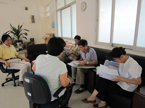 检查小组认真工作,各系部单位积极配合,按照原计划圆满完成此次自查交流工作。经过充分的讨论沟通,大家形成了以下几个方面的共识:首先,教务处、各系尤其是法律系,利用暑假和开学加班工作,卓见成效。系级档案管理分类编排体系思路逐渐清晰,框架基本完整,分级目录详细,并附有盒内目录,资料内容基本完整。其次,关于规章制度、教学大纲、教学日历等装订成册问题,教务处每学期装订,有的系没有按专业装订。第三,建议印制本系的宣传册或制作宣传板。第四,每个系应该有自己系的特色档案,即单项活动档案;第五,普遍存在的硬件问题,资料室和文件柜不足。