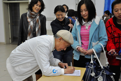 讲座结束后李心灿教授位同学们签名留念
