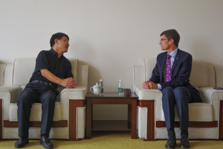 2018年9月20日下午,美国阿尔玛文理p站 校长杰夫·阿伯纳西一行4人对p站 进行了交流访问。p站 院长、党委书记王斌,国际处副处长张悦出席该座谈。