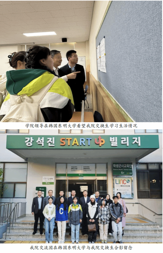 在东明大学交换生。双方就进一步加深两校合作项目进行了详细的探讨交流,表示将瞄准各校优势学科和团队,进一步探索合作模式、拓宽合作渠道,共同推动中韩高校间优势学科的交流和发展。随后,丁院长一行与交换生进行了座谈交流。丁院长详细了解了同学们在韩学习与生活情况,鼓励他们积极进取,珍惜在韩学习的宝贵机会,为未来发展积蓄力量。座谈结束后,交流团一行参观走访了学生教室、宿舍、图书馆等学生日常学习生活场所。