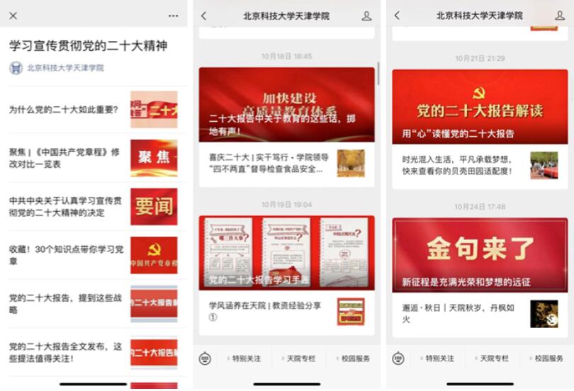 p站 聚焦学习宣传党的二十大精神这一重大主题开展宣传活动,在官方网站、官方公众号等开辟专题专栏、专门版块集中转载中央和市级媒体重点宣传稿件,同时深入挖掘师生学习宣传贯彻党的二十大精神的典型事迹和良好风貌,营造随处可学、随时可学的浓厚氛围,推动全体师生将党的二十大精神内化于心、外化于行。