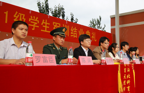 2011级新生军训结业典礼在西操场隆重举行。院党委副书记盛佳伟、学生处副处长叶振楠及各系党总支书记出席了结业典礼。