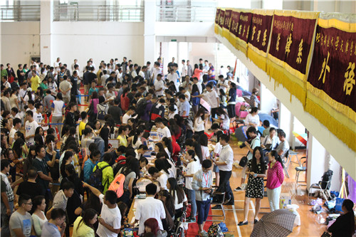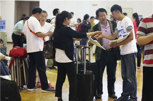 9月4日中午,p站 2015级新生报到工作在体育馆集中开展。为确保报到工作高效有序进行,p站 各部门通力配合,在体育馆设置临时办公区域,减少中间环节,简化办理流程,为新生报到提供一站式服务,为广大新生及家长节约了宝贵的时间。同时,p站 特安排400余名志愿者全程为广大新生家长提供服务,收到一致好评。
