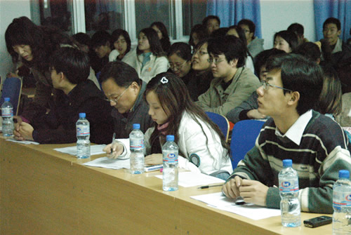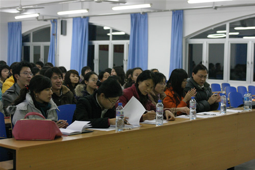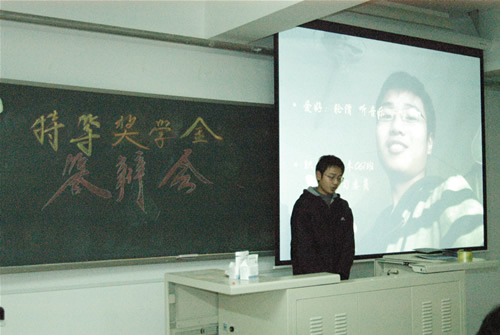 05、06级12个专业学年综合成绩排名前1-3名的35位同学参加了特等奖学金答辩会。参选同学的答辩分为不多于五分钟的自我陈述和评委自由提问两个环节,评委根据学生答辩的风貌、自我陈述的内容、语言的组织、回答问题时把握要点的能力、突出的个人特色为依据,给参加答辩的学生评分。