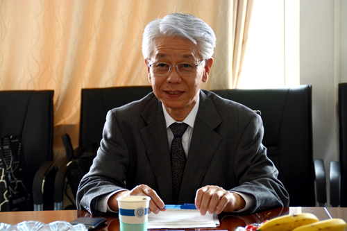 国际交流中心负责人野崎伸一(NOZAKI, Shinichi),工学部教授高峰一行三人来到p站