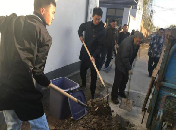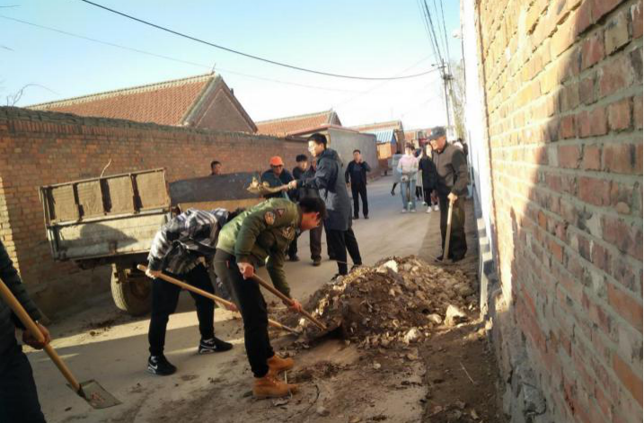 第二步,教师以及学生党员与镇西村的老党员们一起拿起工具进行帮扶工作。学生党员深深体会到,农村建设在党的领导下发展越来越好,内心的使命感油然而生。正如习近平总书记所强调的坚决打好扶贫开发攻坚战,镇西村也积极响应号召,进行“美丽乡村”建设,修筑水泥街道、自来水改造、污水处理、通燃气等。