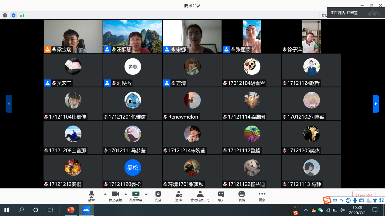 院长刘胜富教授以及全体环境系师生共210余人出席了会议,实际检验了采用“腾讯会议”进行长时间、多人数网络教学的可行性,获得了学生网络情况的基本信息,并制定在线教学应急预案等,为3月9日开学后的线上教学初步筛选了合适的网上教学平台。此外还邀请了 3 位p站