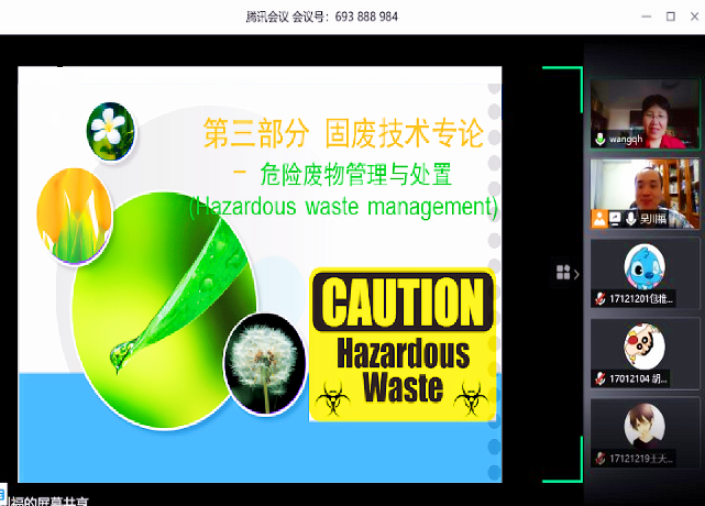 环境工程研究院院长魏振强博士因疫情原因没法回国授课,但他坚持在美国为学生们讲授核心专业课《水污染控制工程》,由于时差关系,魏老师经常要在美国时间凌晨1:30到3:05授课,坚持保质保量上好每节课。魏老师创新理念超前,将传统的污染治理手段与大数据、人工智能、信息技术相结合,主动与信息系、无人机系老师合作,共同指导环境系学生申报了“智能垃圾箱”、“基于四旋翼无人机环境监测系统设计与研究”大学生创新创业项目,并分别获批市级和国家级项目,为培养跨自动化、信息化及环保综合性、复合型人才探索新的途径。吴川福副教授也大量收集讲课素材,认真备课,通过列举众多的危险废物非法处置案例,激发了学生们将来作为“绿色卫士”的责任感和使命感。
