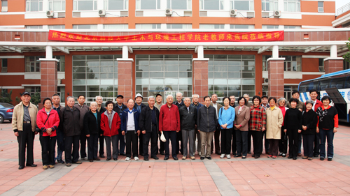 老教师们在校门口合影留念