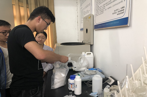 无机非金属结构材料研究室党支部研究生党员代表为全体党员操作了光催化模拟实验,并与p站