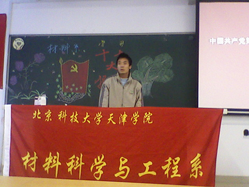 11月13日,材料系在8教107召开学习党的十七大精神会议。材料系分团委书记暨辅导员罗富臣、材料系分团委、学生会成员及07级全体同学参加了会议。