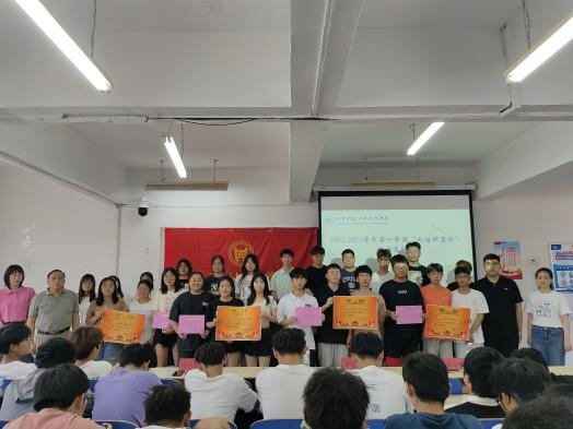 分团委在9教203举办2022-2023学年第一学期“无挂科宿舍”表彰暨2022—2023年第二学期“无挂科宿舍”活动动员会。机械工程系主任朱超甫教授、分团委书记李雲啸、辅导员张永悦、李梦珂老师参加并为2022-2023学年第一学期“无挂科宿舍”颁奖。
