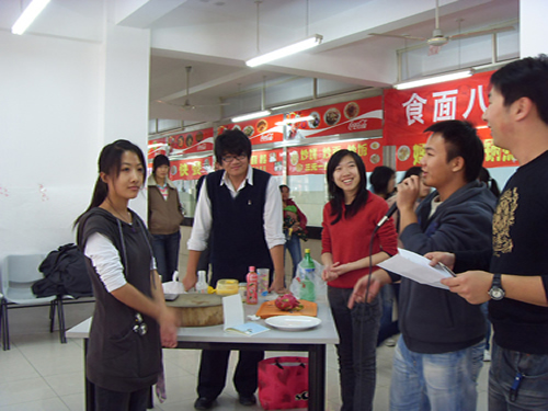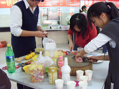 做菜过程中同学们都拿出了自己看家本领,每道菜都搭配巧妙,精工细作。评比根据每道菜的色、香、味、意、形进行综合打分。最后来自机械工程系物流072班“美味情缘”代表队的“极地之恋”摘取了桂冠。经济系金融075班“辣妹厨房”代表队的“干烧鱼”和物流071班“食神梦之队”的“四氏红烧肉”荣获二等奖,物流072班“果果家族”代表队的“香酥鸡胸”、经济系金融076班“四喜丸子”代表队的“蛋包饭”获得三等奖。