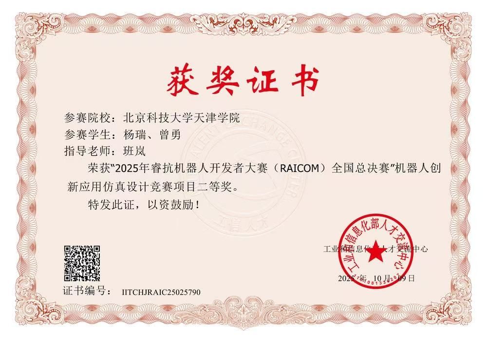 | 机器人创新应用仿真设计 | R25061610240 | 杨瑞、曾勇 | 班岚 | 北京科技大 学p站