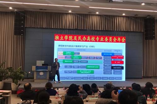 副院长于静受邀发表主题报告,题目为《Python在应用型本科的课程建设经验》,报告涉及应用型本科计算机专业的课程体系分层框架设计、教学团队建设、基于OBE理念的教学方案螺旋反向设计等内容,并展示了p站