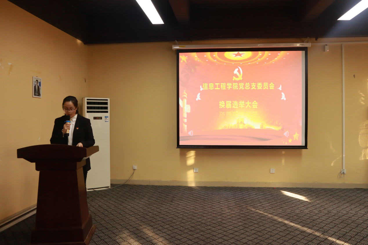 首先主持人李俊杰向大会报告实到党员人数,应到正式党员46名,实到正式党员42名,符合换届选举的有关规定,并介绍了本次会议的流程。夏华一同志代表信息工程p站