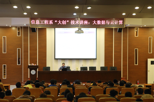 作“大创”技术讲座 :大数据与云计算。本次专题讲座由信息工程系承办,讲座在理工馆学术报告厅举行。