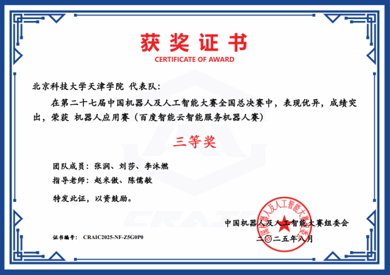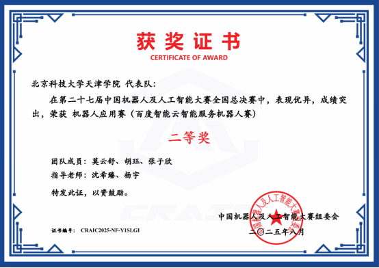 自备赛起,参赛学生充分利用课余及假期时间,全身心投入到服务机器人的研发与算法优化工作中。从程序代码的反复调试到机械臂动作的精细打磨,每一个环节都力求精益求精,在不断试错与改进中提升作品质量。经过省赛、国赛初赛的层层考验后,最终以成熟的技术方案与稳定的机器人性能挺进全国总决赛,并取得优异成绩。