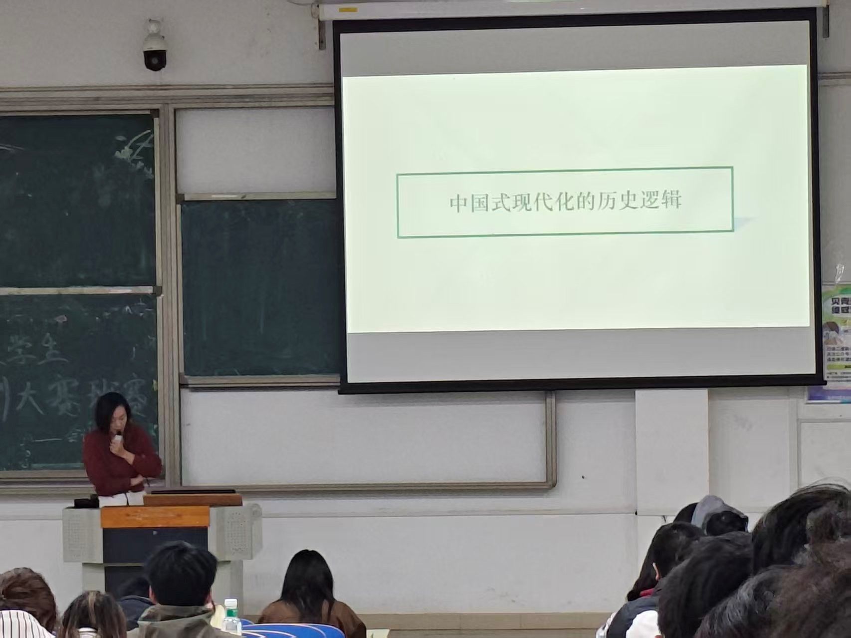 陈霞老师以“中华民族伟大复兴的历史逻辑”为题,为同学们带来了一场生动深刻的历史课。讲座中,陈老师从鸦片战争后的山河破碎讲到新时代的伟大变革,以宏阔的历史视野、清晰的逻辑脉络,系统梳理了中华民族伟大复兴道路的探索历程。她指出,中华民族伟大复兴深刻揭示了 “只有中国共产党才能救中国,只有中国共产党才能发展中国”的真理,同学们认真聆听、仔细记录,在回顾历史中感悟党的初心使命,在思想碰撞中增强历史责任感。