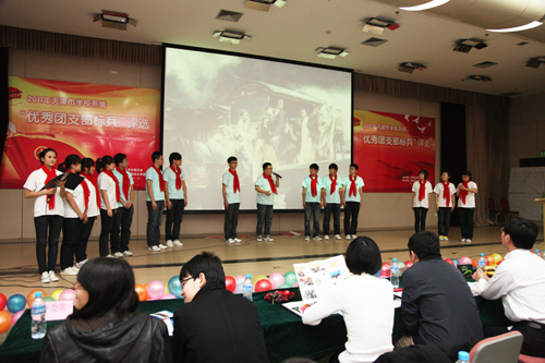 经济系金融0901团支部以其出色的支部建设成果、扎实的工作风格、幽默的展示方式获得评委的阵阵掌声,并最终获得“2011年天津市p站