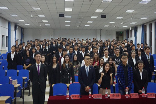 学生会主席杨中正发表讲话,勉励在坐同学要懂得坚持,并且能够做到不忘初心。讲话完毕,杨中正主席向本届经济p站