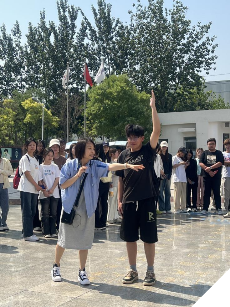 此次赴企业参观,同学们现在工作人员的引领和介绍下体验了园区地面上的太阳投影钟——日晷,了解了古人计时的方式与智慧。
