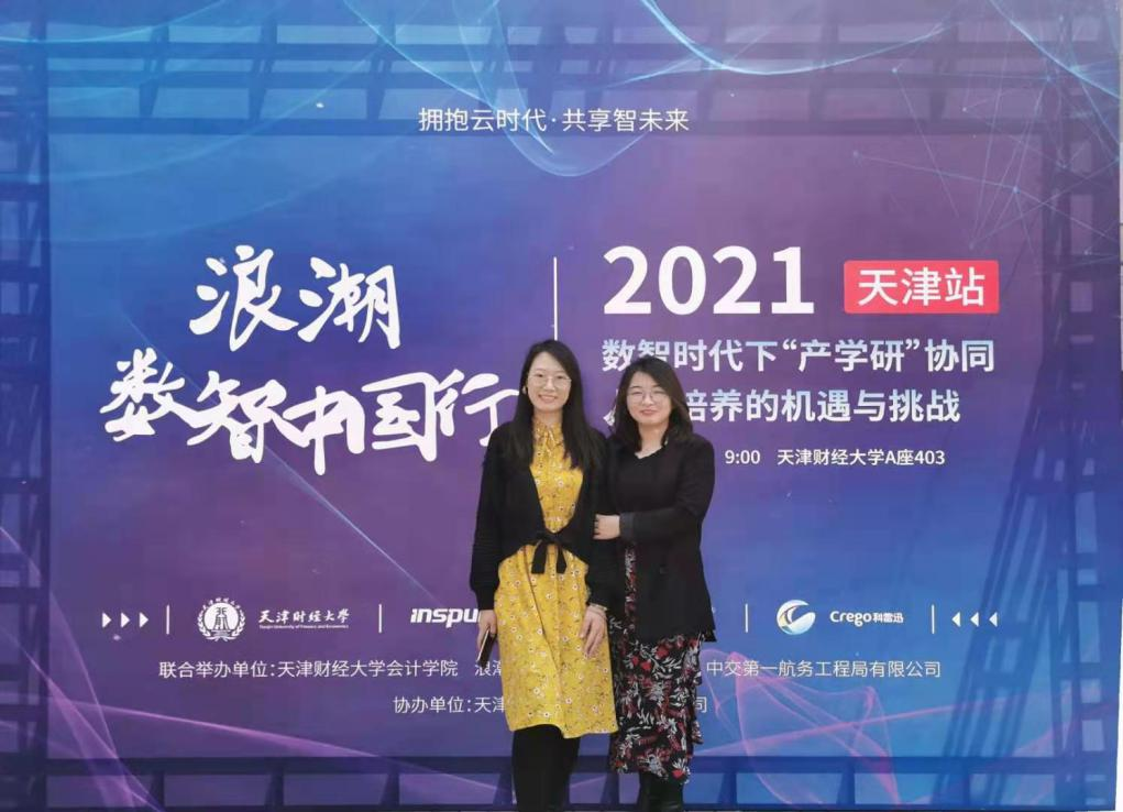 邵帅和张媛两位老师参加了在天津财经大学举办由天津财经大学、中交第一航务工程局有限公司(以下简称中交一航)、浪潮铸远教育科技有限公司(以下简称浪潮铸远)联合主办的数智时代下“产学研”协同育人培养的机遇与挑战高峰论坛。