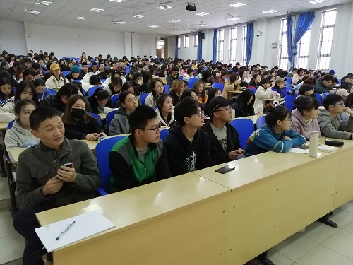 于一教授,参加对象为17级财会专业学生以及部分16级财会专业学生共计500余人。