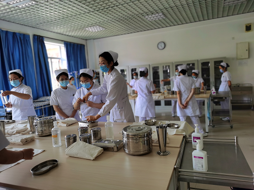 杨主任对每位走上讲台的在编新教师进行了规范教学的培训讲座,进一步规范教学管理,使每位教师受益匪浅。并且对教师们的护理实训操作进行了统一要求与训练,同时,安排部署课下开放护理实训室,以确保学生对护理操作项目能够熟练掌握。