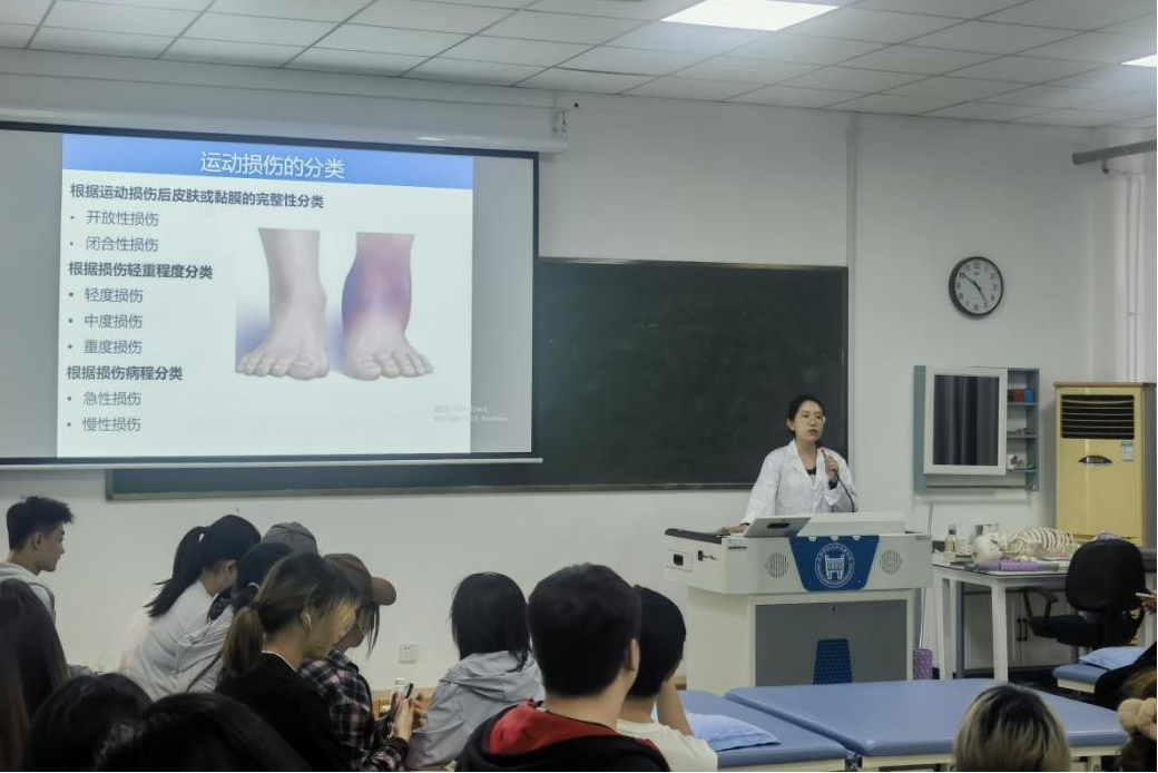 康复治疗系《运动疗法技术学》主讲教师张怡晖为康复22级全体学生开展理论教学和实操演练,通过有计划、有组织的运动损伤(赛前热身、赛后拉伸)相关的理论教学和实操演练,为助力校运会和学生今后工作奠定良好的理论和实践基础。实操演练结束后并对所有学生进行肌肉牵伸技术考核,择优选择11名同学代表康复治疗系开展校运会志愿服务实践活动。