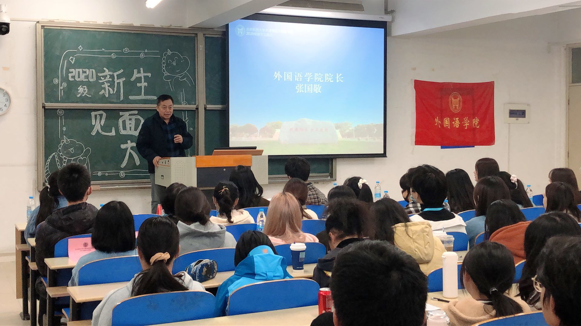 院长张国敬、党总支书记张添善、分团委书记李萌、英专教研室主任张媛、日语教研室主任孟彤、教学秘书耿睿等老师出席本次新生见面会。本次新生见面会由2020级辅导员殷梓培主持。
