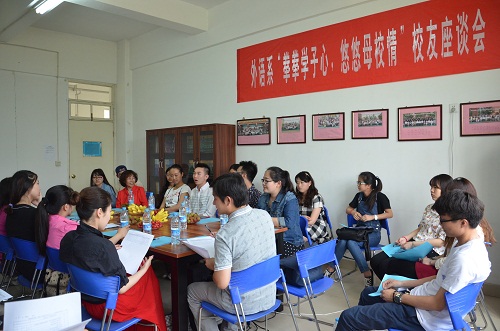 与会校友认真观看了介绍外语系发展历程的视频--《外语系的那些年》,随后校友们在发言中表达了对母校的感恩之情,也分别介绍了各自现在的工作情况以及工作中的感触,并向学弟学妹介绍了自己的经验。