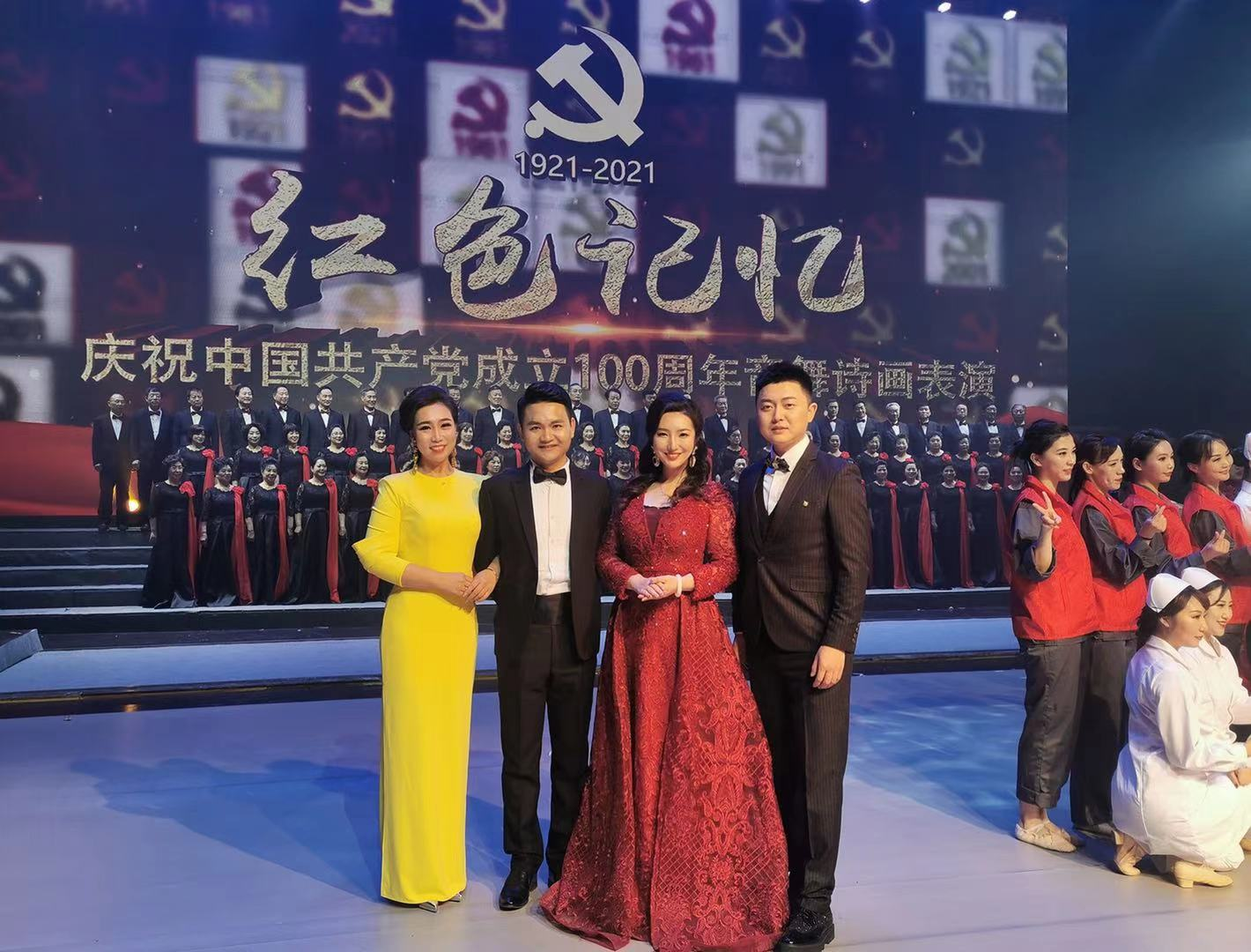 庆祝建党100周年期间,鲍老师作为主要演员还参加了由市委宣传部、市委党校、各区县单位主办,天津交响乐团承办的“没有共产党就没有新中国”大型交响合唱音乐会;滨海新区总工会和滨海文投公司联合出品的“红色记忆”庆祝中国共产党成立100周年大型音舞诗画等近20余场党庆演出,用扎实的唱功,成熟稳重的舞台表演讴歌党,讴歌时代。
