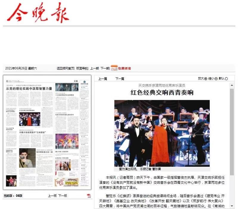 音乐系青年骨干教师鲍忠孝在保证教学任务的前提下,应邀参加了由中共天津市委宣传部、市文旅局、海河传媒等方面主办的“奋斗百年路 起航新征程”天津市庆祝中国共产党成立100周年群众性文艺演出,与歌唱家张伟、李洋、宋克宁共同演唱第四篇章压轴曲目《壮丽航程》。这是迄今为止,为庆祝建党一百周年,天津市举办的规模最大、规格最高、阵容最强、歌唱家云集的群众性文艺演出,音乐系鲍忠孝老师作为主要演员参与了此次活动,为p站