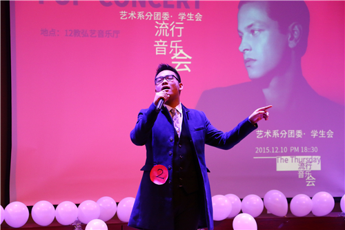 艺术系分团委•学生会组织的第一届“流行音乐歌手大赛”在12教弘艺音乐厅隆重举行。出席本次活动的有艺术系分团委书记李洋,邀请了艺术系声乐教师马婷婷,钢琴教师戴蔚、理论课教师刘承晓担任本次大赛评委。
