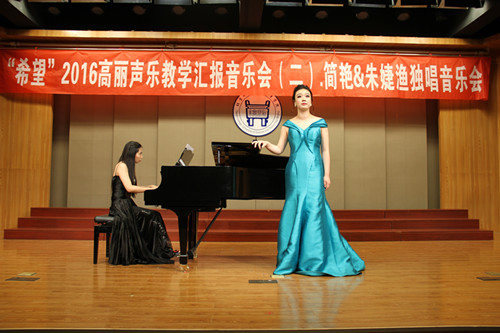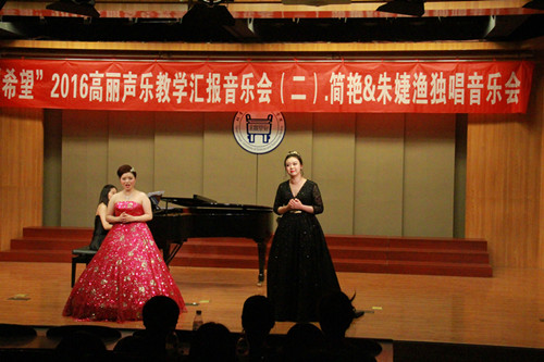 本场音乐会以“希望”为主题,不仅对两位学生在三年来努力学习的成果做出了汇报,更展示了高丽声乐教学的成果——高丽的学生在国内外各类比赛中获奖,并在今年的毕业班中,高丽的两位2012级学生,分别考取了天津音乐p站
