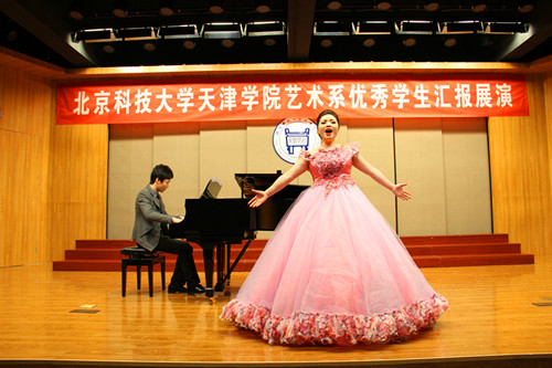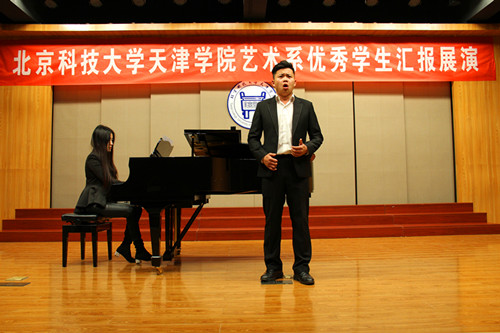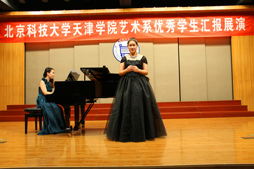 艺术系优秀学生汇报展演在12教学楼弘艺音乐厅举行。 在艺术系声乐1401班王明明同学和声乐1302班魏欣同学的精彩开场白后,演出正式拉开了帷幕。